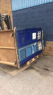 Can we just point out that this Tardis was in terrible condition, the cill fell off in transit and when we moved it on its own original wheels the doors fell off. Sadly its been left outside and as its a 54 year old film prop that wasn't designed for the English outdoor weather.